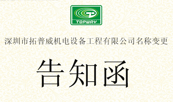 尊敬的各合作伙伴:根據(jù)公司發(fā)展需要,我司名稱“深圳市拓普威機電設備工程有限公司”已于2017年9月4日正式變更為“深圳市拓普威節(jié)能...